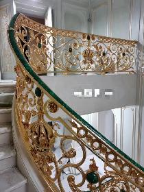 銅樓梯扶手,銅欄桿定制廠家材料:黃銅、紫銅,采用實心鑄壓銅花等工藝規格:根據客戶實際要求定制尺寸:定 ..
